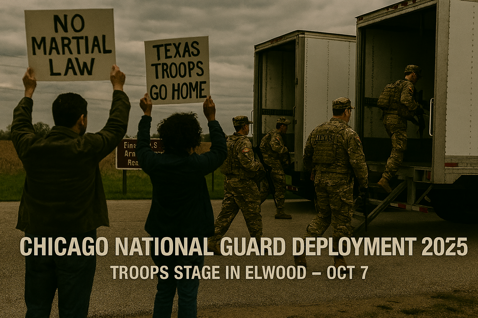 As the sun set over the vast 3,600-acre expanse of the U.S. Army Reserve training center in Elwood, Illinois, on October 7, 2025, a line of camouflage-clad Texas National Guard members filed into mobile sleeping units, their long guns slung over shoulders, a stark intrusion into the quiet farmland. Nearby, Will County resident Erin Gallagher held a sign reading “No Troops in Our Backyard,” her voice joining a small but fervent protest against what she called an “armed occupation.” The Chicago National Guard deployment 2025 had materialized—not in the city’s bustling streets, but in this unlikely staging ground 40 miles south—marking a federal flex that deepened divides and stirred souls. For immigrant families in Chicago’s Pilsen and Little Village, it was a distant rumble of dread, a reminder that sanctuary promises could crumble under military might, turning everyday routines into rituals of vigilance.