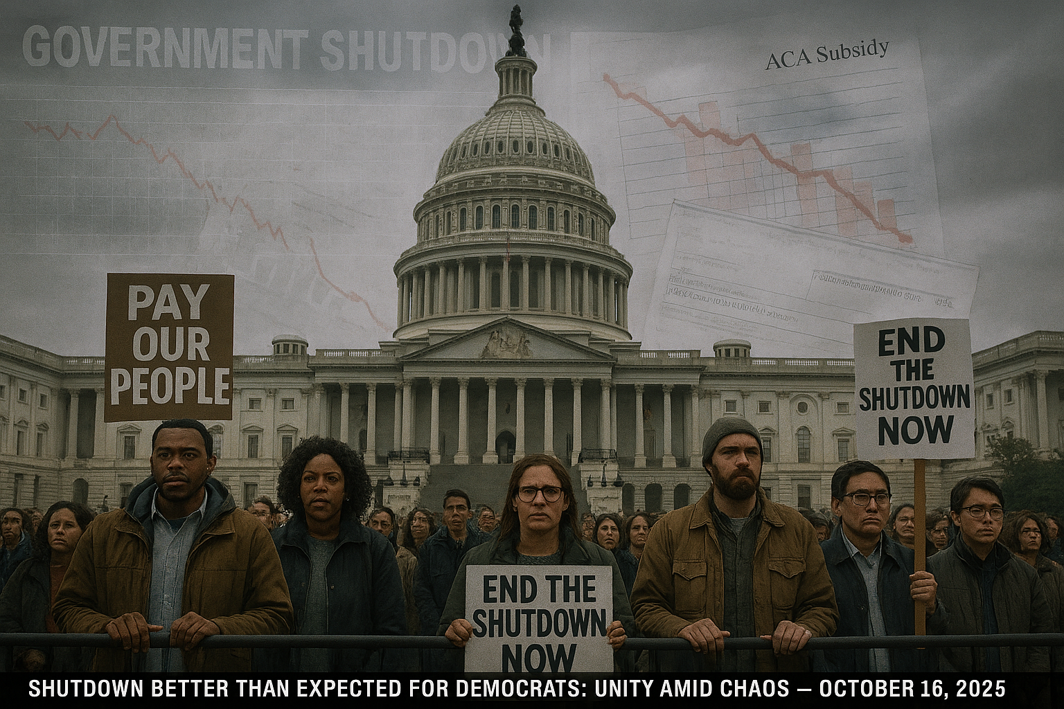 As October 16, 2025, ticks toward turbulence, the government shutdown 2025’s “better than expected” arc for Democrats whispers a wary wisdom: mid-plunge reassurances can’t defy gravity forever. From polling perches to premium perils, this Republican shutdown blame game binds a party in purpose, but the landing looms. For the furloughed and the faithful alike, it’s a clarion—fiscal fights forge futures, but only if the fall yields flight, not fracture, in democracy’s daring descent.