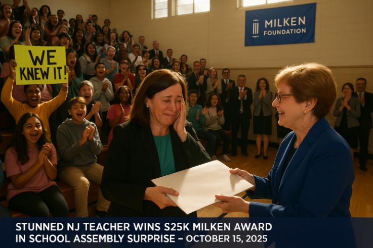 The gym at Lawrence Middle School buzzed with the usual midday hum—students fidgeting, whispers rippling like wind through bleachers—until a name echoed that stopped hearts cold. On October 15, 2025, English teacher Jeanette Capritti stepped into what she thought was a routine assembly on digital wellness, only to emerge $25,000 richer and forever etched in New Jersey’s teaching lore. This NJ teacher Milken award surprise, orchestrated with the precision of a plot twist, unfolded amid cheers and sobs, a raw reminder that the quiet heroes shaping young minds often shine brightest in the unlikeliest spotlights. For Capritti, a devoted classroom captain since 2019, it was more than windfall— it was a whispered validation of the daily leaps she takes with her students, turning pages into possibilities in Lawrenceville’s vibrant halls.