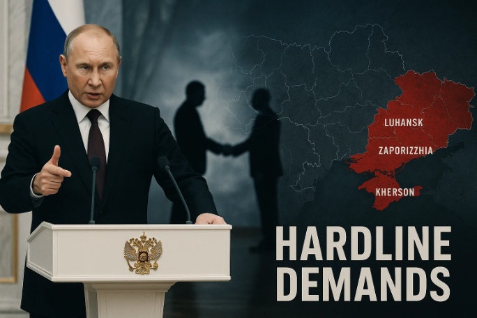 In a televised address that dashed hopes for an immediate ceasefire, Putin made it clear that his definition of “peace” requires significant territorial concessions. The core of the Putin Ukraine demands rests on the full administrative transfer of Donetsk, Luhansk, Kherson, and Zaporizhzhia to Russian control.