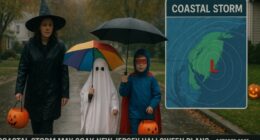 Climate & Environment New Jersey Halloween Storm Threat: Coastal Low Pressure May Drench Trick-or-Treating Porch Lights Flicker: A Coastal Low Threatens Jersey’s Spooky Soirée Envision the… NewsVeil Staff WriterOctober 24, 2025