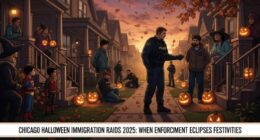 Society & Justice Chicago Halloween Immigration Raids 2025: Terror in Evanston and Suburbs Shatters Holiday Peace Chicago Halloween Immigration Raids 2025: A Neighborhood’s Nightmare Unfolds on All Hallows’… NewsVeil Staff WriterNovember 1, 2025